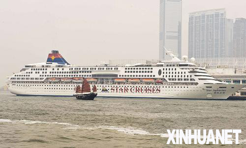 8月2日,搭載內地旅行團赴臺灣旅游的麗星郵輪“寶瓶星號”停泊在香港維多利亞港。新華社記者 呂小煒 攝