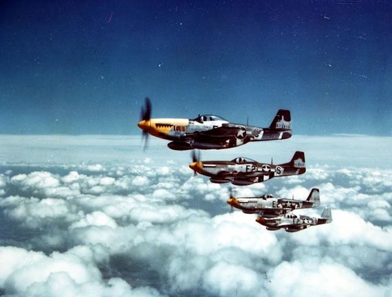 開國大典上,受閱的我軍第一支航空隊的17架作戰飛機,有美國的P-51“野馬”戰斗機,有英國“蚊”式戰斗轟炸機等多種、多國飛機,因數量有限,只能在天安門廣場上空來回飛行,以示壯觀。