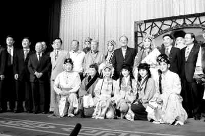 中國和平統(tǒng)一促進會已連續(xù)3年與北京京劇院合作,組織藝術(shù)交流團赴臺灣進行公益演出。圖為2008年10月京劇藝術(shù)團赴臺演出后,觀眾與演員合影。