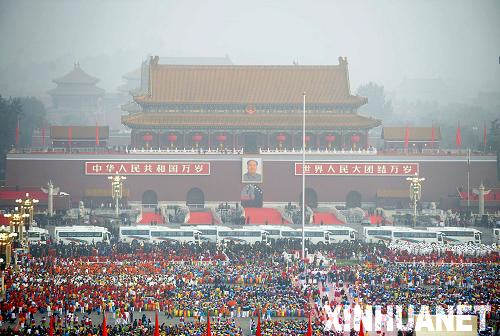 新華網天安門廣場10月1日電(記者 李斌、崔清新)首都各界慶祝中華人民共和國成立60周年大會準備工作基本就緒。中共中央總書記、國家主席、中央軍委主席胡錦濤將在大會上發表重要講話,之后舉行盛大的閱兵式和群眾游行。