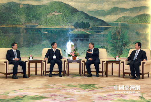 中國臺灣網12月10日北京消息 全國政協副主席、全國工商聯主席黃孟復,10日在北京人民大會堂會見了由臺灣工商建設研究會理事長賴正鎰率領的臺灣工商建研會大陸經貿考察團一行。考察團一行70余人于7日抵達北京,出席兩岸產業合作交流研討會等活動。(中國臺灣網 田云鵬 攝)