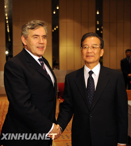 12月17日,中國國務院總理溫家寶在哥本哈根會見英國首相布朗。新華社記者劉建生攝