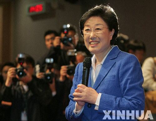 資料圖片:2007年3月7日上午,韓國總理韓明淑在首爾發表告別講話。當天,韓國首位女總理韓明淑正式辭去總理職務。 新華社發(紐西斯通訊社)