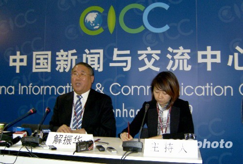 參加哥本哈根聯合國氣候變化大會的中國代表團團長解振華當地時間12月14日舉行媒體吹風會,介紹會議進展情況并回答記者提問。 中新社發 李洋 攝