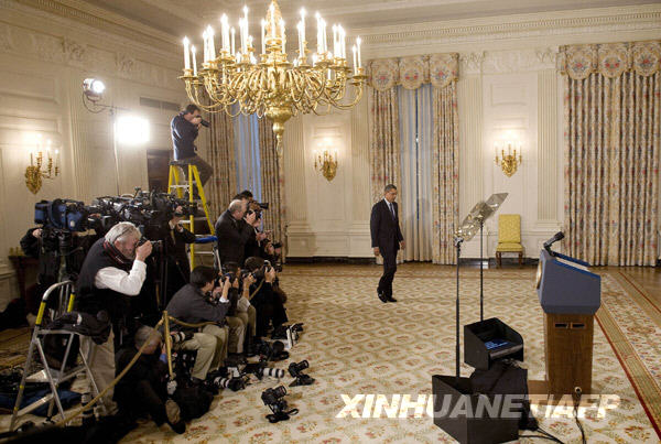 1月7日,在美國首都華盛頓白宮,美國總統(tǒng)奧巴馬準備就圣誕節(jié)未遂炸機事件發(fā)表講話。當日,奧巴馬宣布為圣誕節(jié)未遂炸機事件承擔責任。新華社/法新