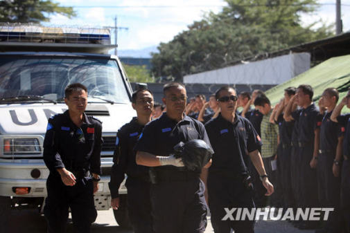 當運送遺體的靈車緩緩進入中國駐海地維和警察防暴隊營地時,所有防暴隊員在馬路兩邊列隊。當時營地十分安靜,只聽見隊員整齊劃一的敬禮聲。記者看到,許多防暴隊員的臉上掛滿淚水。