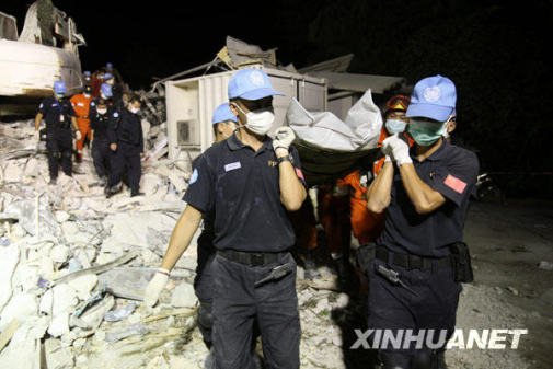 新華網北京1月16日電(記者趙超)黨中央、國務院高度關注海地地震中我維和警察失去聯系人員的搜救情況。16日,在前方救援隊發現第一名同志的遺體后,國務委員兼公安部部長孟建柱立即再次召開部黨委會議,貫徹落實中央領導同志指示精神,并就前方救援工作做出進一步部署。