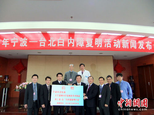 昨天上午,記者從寧波—臺(tái)北白內(nèi)障復(fù)明活動(dòng)新聞發(fā)布會(huì)上獲悉,臺(tái)北市寧波同鄉(xiāng)會(huì)理事長(zhǎng)毛葆慶一行攜帶50枚人工晶體,并組織眼科專家在寧波開(kāi)展復(fù)明手術(shù)。這些人工晶體將被用于50位寧波貧困白內(nèi)障患者的免費(fèi)手術(shù)治療。