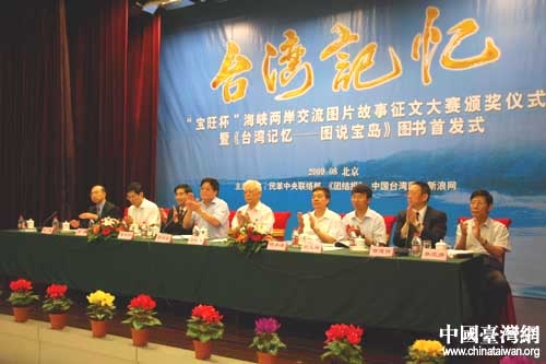 中國臺灣網(wǎng)8月26日北京消息 由民革中央聯(lián)絡(luò)部、《團結(jié)報》、中國臺灣網(wǎng)、新浪網(wǎng)聯(lián)合主辦,北京寶旺集團有限公司贊助的“臺灣記憶——寶旺杯海峽兩岸交流圖片故事”征文活動頒獎儀式暨《臺灣記憶——圖說寶島》圖書首發(fā)式今天在北京隆重舉行。全國人大常委會副委員長、民革中央主席周鐵農(nóng)出席頒獎儀式并發(fā)表講話。