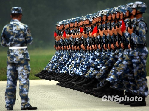 在10月1日的國慶閱兵中,陸、海、空三軍航空兵部隊將組成龐大的受閱機(jī)群,沿長安街方向飛過天安門廣場。目前,各受閱梯隊正在緊張的訓(xùn)練中。 10余支航空兵師、團(tuán)從天南海北飛赴冀北平原,駐訓(xùn)于京、津、冀間的數(shù)個軍用機(jī)場。