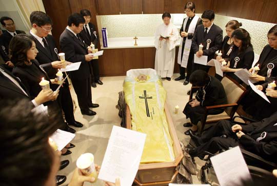 韓國前總統金大中的入殮儀式20日中午在首爾塞弗倫斯醫院臨時靈堂舉行。