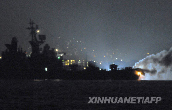 10月27日,在日本南部的關門海峽,日本海上自衛隊的“鞍馬”號驅逐艦在與一艘韓國貨船相撞后起火燃燒。日本防衛省說,“鞍馬”號與一韓國貨船當日晚在這里相撞并起火,造成3名日本艦員受輕傷。新華社/法新