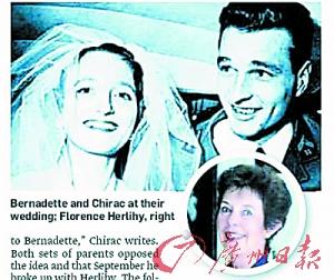 自傳還披露,1951年,19歲的希拉克在巴黎政治學院的歷史課上,認識了他現在的妻子——18歲的美麗女孩貝爾納黛特·肖德龍·德庫塞爾,后者出身于法國名門望族德庫塞爾家族。兩人幾乎一見鐘情,后來還悄悄私訂終身。