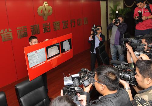 中國福彩3.599億元巨獎得主現身兌獎 新華社記者趙鵬攝