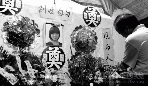 遺像上的婷婷,披著齊肩短發,微笑的她看上去清新可愛。“別世匆匆”,遺像上方的這幾個字特別引人注目,讓人一陣陣心寒。“太可惜了,這么乖的娃娃就這樣走了。”前來悼念的親友們都不停地搖頭惋惜。