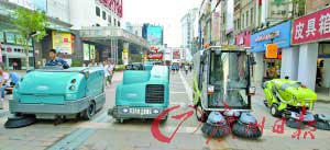 4款新引進(jìn)的多功能環(huán)衛(wèi)清潔設(shè)備昨日在北京路亮相。記者陳安攝