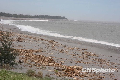 “莫拉克”臺(tái)風(fēng)遠(yuǎn)離,但所引發(fā)的“88水災(zāi)”為臺(tái)灣近50年來僅見,圖為重災(zāi)區(qū)之一的旅游勝地臺(tái)東縣,海邊綿延數(shù)十公里堆積漂流木,“沙灘變成木灘”,連海水也變色。 中新社發(fā) 董會(huì)峰 攝
