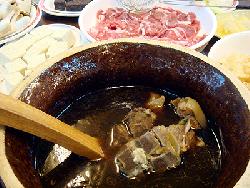 嚼勁十足的羊肉塊,事先用麻油炒過,更能嘗出肉質的鮮美,此時再沾上特調豆瓣醬,滋味迷人。由與鍋本身為陶制再加上木炭熬煮的關系,所以湯頭越到后面是越煮越濃郁,是到臺南的你不能錯過的美食。