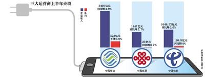 截至21日晚,三大運營商半年報出齊。聯(lián)通21日公布的業(yè)績顯示,上半年營收1446.85億元,同比下降5.7%。此前中國移動、中國電信也發(fā)了半年報,中國移動上半年營收3407億元,同比增長4.9%。中國電信上半年營收凈利雙降,營業(yè)收入達到1649.53億元,同比微降0.6%。