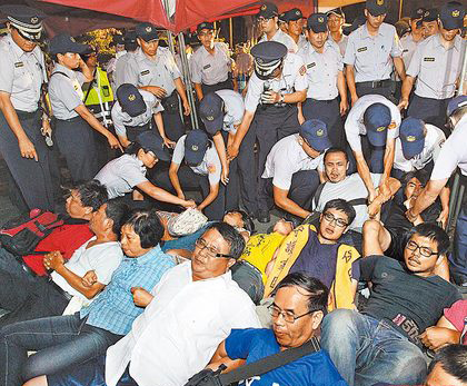 苗栗大埔自救會連日來在臺當局“行政院”前抗議,臺北市警方昨凌晨強制驅離,有2名民眾送醫觀察。(圖片來自臺媒)