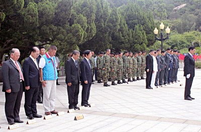 八二三炮戰55周年,馬英九(前右)率同臺軍高層將領 、金門各界首長追思陣亡將士。臺灣“中央社”