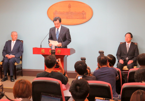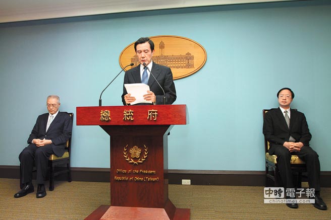 馬英九在吳敦義(右)、江宜樺(右)陪同下召開記者會