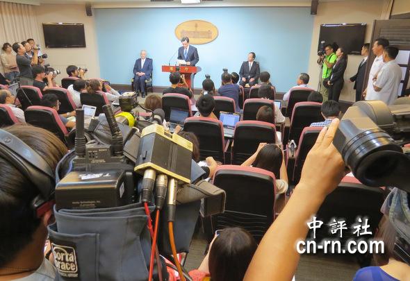 臺“立法院長”王金平涉關(guān)說,馬英九(中)、吳敦義(左)及江宜樺8日下午召開記者會,馬英九強調(diào)這是侵犯司法獨立最嚴重的一件事,“必須嚴正面對”