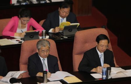 王金平大約上午8時,提前進入議場,江宜樺在8時50分左右才抵達“立法院”,似乎刻意錯開時間。9時王金平準時現身主席臺宣布開會時,江宜樺則是快步從側門步入場中坐定,兩人連視線都沒有交會,更沒有互動。(中國臺灣網 朱煉)