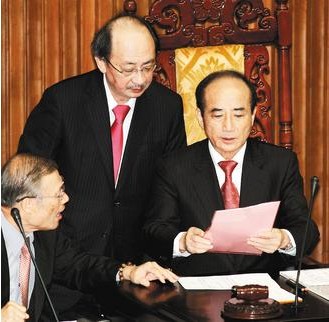 王金平說,這是“立法院”第三次處理“倒閣”案,也是本屆第二次。“立院”下周一上午11點30分審查不信任案,將開放朝野“立委”發言,每人發言時間5分鐘,預計屆時將有至少五、六小時的“發言車輪戰”,并于下周二上午9點記名投票。
