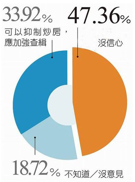 臺媒一項最新民調結果顯示,有近5成民眾對臺當局“財政部”取締炒房之舉沒信心。