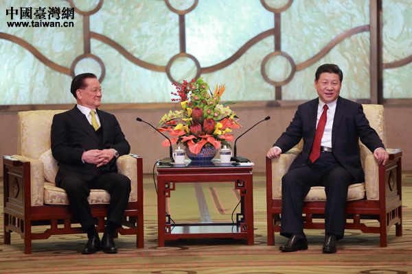 18日下午,習(xí)近平在北京釣魚臺國賓館會見了中國國民黨榮譽主席、兩岸和平發(fā)展基金會董事長連戰(zhàn)及隨訪的臺灣各界人士。(中國臺灣網(wǎng) 于斯文 攝)
