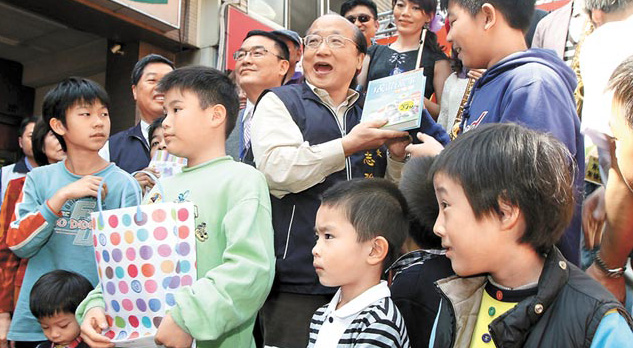 胡志強(中)昨日出席臺中藍興媽祖萬春宮舉辦的“媽祖賜福愛心宴”活動。
