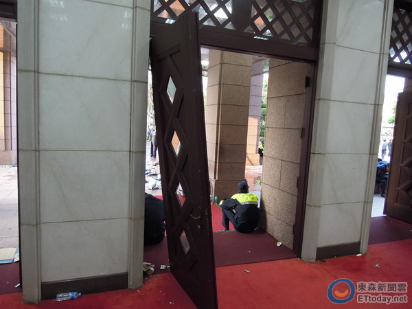 據(jù)報道,臺灣“行政院”中央大樓內(nèi)部多遭破壞,不只門窗破損,“政務委員”辦公室也遭到蹂躪。為了驅(qū)離民眾,警方在24日凌晨開始動作,透過人力優(yōu)勢將“政院”清空,部分民眾已經(jīng)退回“立法院”。