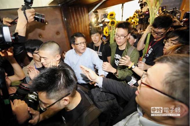 10日傍晚林飛帆(中)與同學們一起步出議場、離開“立法院”。(圖片來自臺媒)