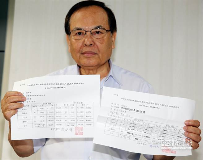 臺北市國民黨部主委鍾則良公布兩家民調公司的結果,計算之后由連勝文勝出。(圖片來源:臺灣《中時電子報》)