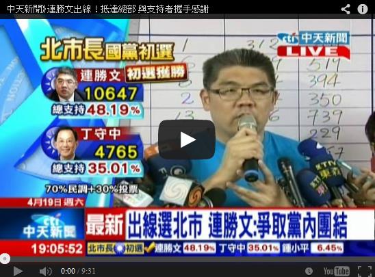 國民黨北市長,連勝文勝出。(圖片來源:臺灣《中時電子報》)