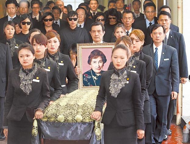 馬英九昨手捧母親遺照,伴著棺木,前往火葬場。(圖片來自臺媒)