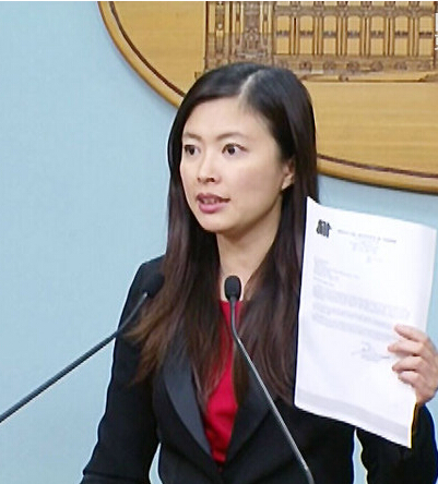 馬英九辦公室發言人李佳霏拿出AIT文件,證明馬英九放棄綠卡在美已結案。(臺媒圖)