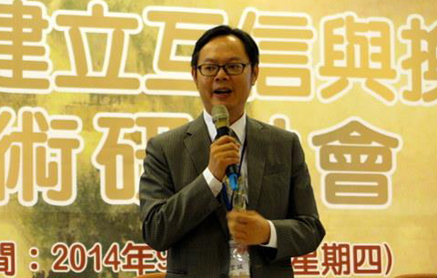 【環球網綜合報道】香港“中評社”報道,國民黨大陸事務部主任桂宏誠25日在臺灣文化大學參加“2014年兩岸建立互信與換位思考”學術研討會時表示,國民黨支持未來兩岸走向統一,1991年開始的多次“修憲”,以及“憲法”增修條文,都是為了統一前的需要而做的準備工作。針對大陸學者質疑,現在臺灣的政府機關對大陸民眾關上大門,桂宏誠表示,絕對沒有這個狀況,無論是大陸人還是美國人,政府機關都很歡迎。