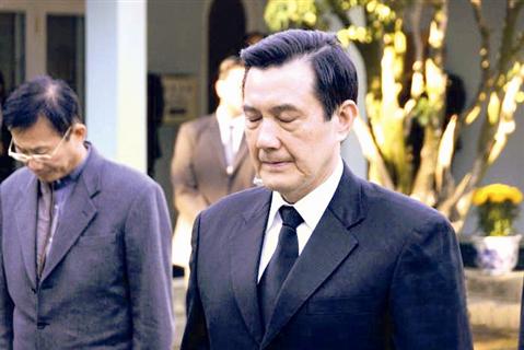 過去幾年每逢蔣經(jīng)國逝世紀(jì)念日,馬英九總會以中國國民黨黨主席身份,獻(xiàn)花鞠躬,恭敬站在昔日長官靈柩與遺像前面報治理成績。無奈去年國民黨“九合一”地方選舉慘敗,連他自認(rèn)最驕傲的黨主席身份也辭去,上午謁靈可以看到內(nèi)心極大的悲傷與壓力,雙眼緊閉強(qiáng)忍淚水壓抑情緒。