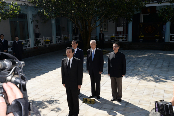 據(jù)臺(tái)灣“中央社”報(bào)道,馬英九神情肅穆,獻(xiàn)花致祭并行三鞠躬禮,俯首追思,典禮莊嚴(yán)肅穆。隨后,馬英九與吳敦義走進(jìn)陵寢,馬英九注視蔣介石遺照,再行鞠躬后才轉(zhuǎn)身離去,神情肅穆,并沒有發(fā)表任何談話。
