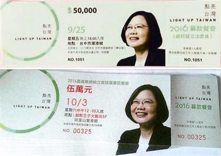 蔡英文募款餐會賣的餐券不便宜,一張最貴要價5萬元(新臺幣,下同),最低也要2萬元。外界保守估計,扣除成本一場可以募得7350萬元,幕僚也說,今年可望超過4年前“大選”募得的7.5億元。不過所有募款行程一概不公開,12日在臺南的餐會,還發(fā)生支持者向媒體展示餐券,卻被工作人員拖走的惡性事件。