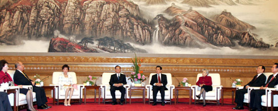 4月29日,中共中央總書記胡錦濤在北京人民大會堂會見中國國民黨主席連戰率領的中國國民黨大陸訪問團全體成員。 新華社記者鞠鵬攝