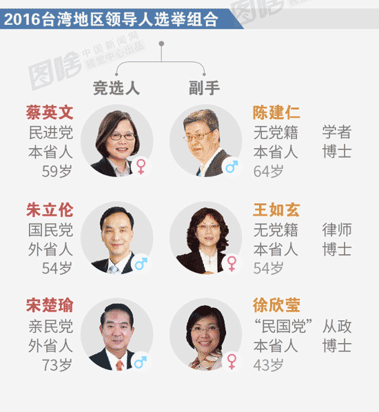 一、2016臺(tái)灣地區(qū)領(lǐng)導(dǎo)人選舉競(jìng)選組合