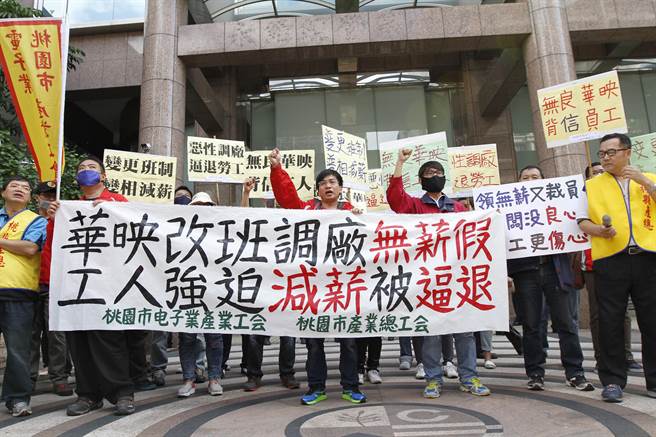 圖為華映員工至勞動部抗議公司不只放無薪假,還有逼退員工之疑。(圖取自臺媒)