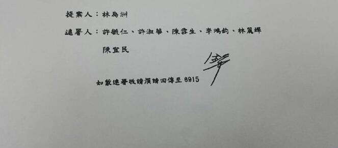 最后助理只好直接把這位“委員”的聯(lián)署書送到議事處,已經(jīng)有經(jīng)驗(yàn)的議事人員一眼就認(rèn)出,那是國(guó)民黨“立委”曾銘宗簽的“銘宗”,議事人員還說(shuō),已經(jīng)有很多人問過同樣的問題。
