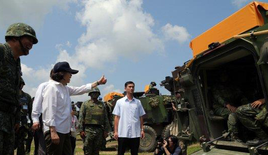 中國(guó)臺(tái)灣網(wǎng)8月26日訊 自22日拉開(kāi)帷幕的臺(tái)軍“漢光32號(hào)演習(xí)”昨天(25日)來(lái)到了“高潮”。此次為期5天,號(hào)稱模擬“大陸猝然對(duì)臺(tái)灣發(fā)動(dòng)攻擊”的攻防演練中,最大實(shí)彈科目“聯(lián)勇操演”,25日上午在屏東三軍聯(lián)訓(xùn)基地登場(chǎng)。臺(tái)灣當(dāng)局領(lǐng)導(dǎo)人蔡英文頭戴鋼盔、身著迷彩防彈背心,全神貫注看完整場(chǎng)演習(xí)。這也是蔡英文上任后,首度參與臺(tái)軍演習(xí)。她現(xiàn)場(chǎng)宣稱,臺(tái)軍就站在“攻擊發(fā)起線”上,請(qǐng)大家跟她一起往前沖。