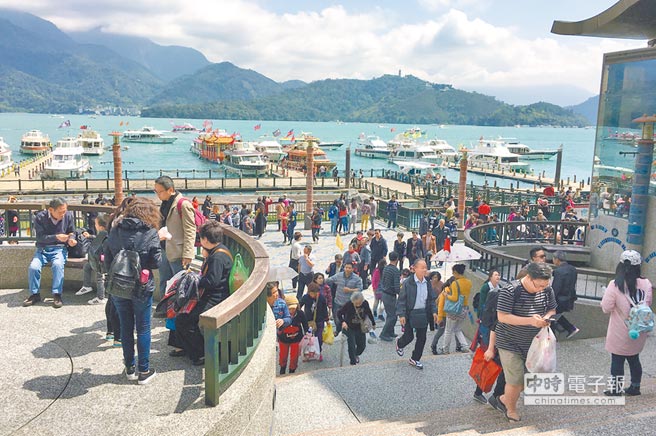 昔日南投縣日月潭水社碼頭陸客團穿梭不息。(圖片來源:《中時》資料圖)