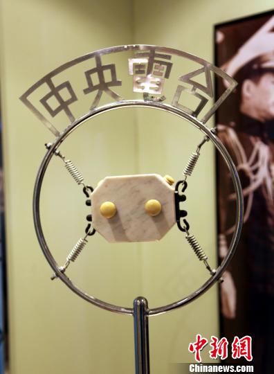 臺灣“中央廣播電臺”文史館展出當年蔣介石在南京宣布對日抗戰取得全面勝利的麥克風。據介紹,該麥克風雖系仿真件,但麥克風的核心部分則為原件。