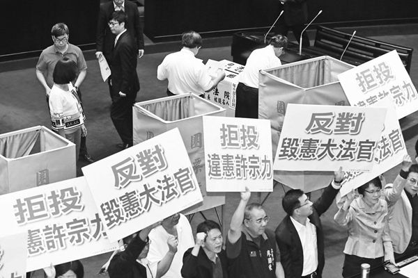 10月25日,被許多臺灣法學教授認為是“臺灣司法的最黑暗一天”。這一天臺灣“立法院”通過了7名新任大法官的同意案,但其中幾人高調主張“兩國論”,拒唱“國歌”,并公開表示過“不認同中華民國憲法”。對于這樣的人最終高票得以擔任“解釋憲法、捍衛憲政體制”的大法官,島內有人稱簡直是“請鬼開藥單”,也有學者認為這是“法理臺獨的最后一里路”。